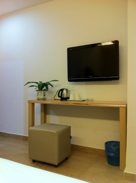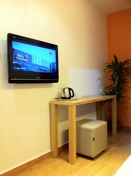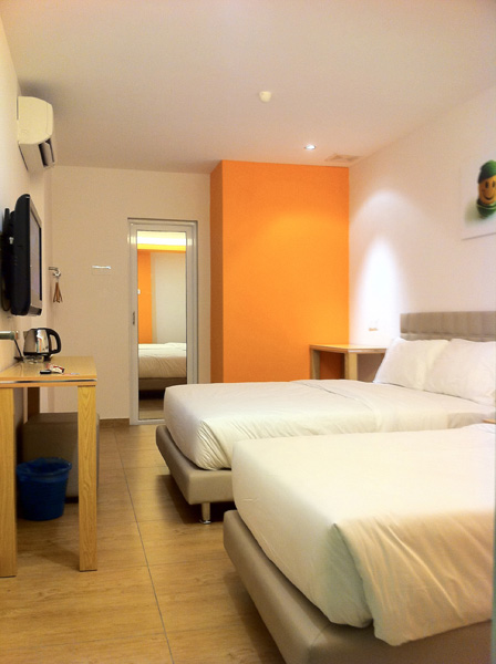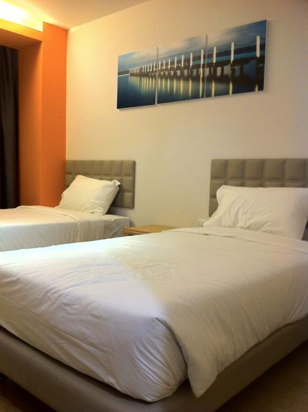 Twins Sharing Room is equipped with 2 Super Single Bed. The room has 4 socket enough for 2 laptop and other electrical usages.