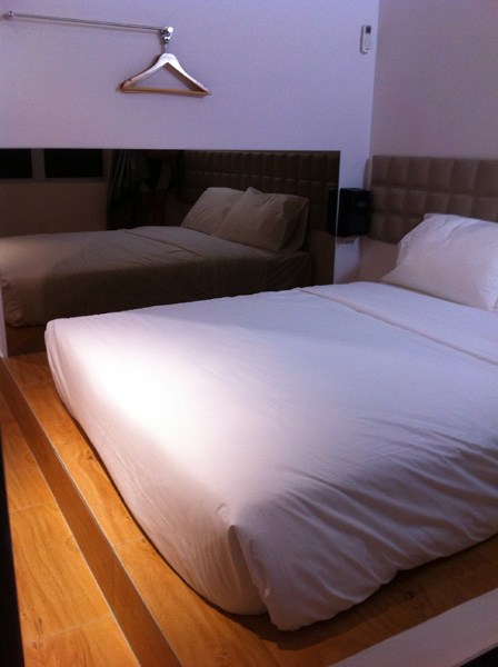 Tatami Mirror Room is a designer room with mirror reflecting bed surface from all angle.
